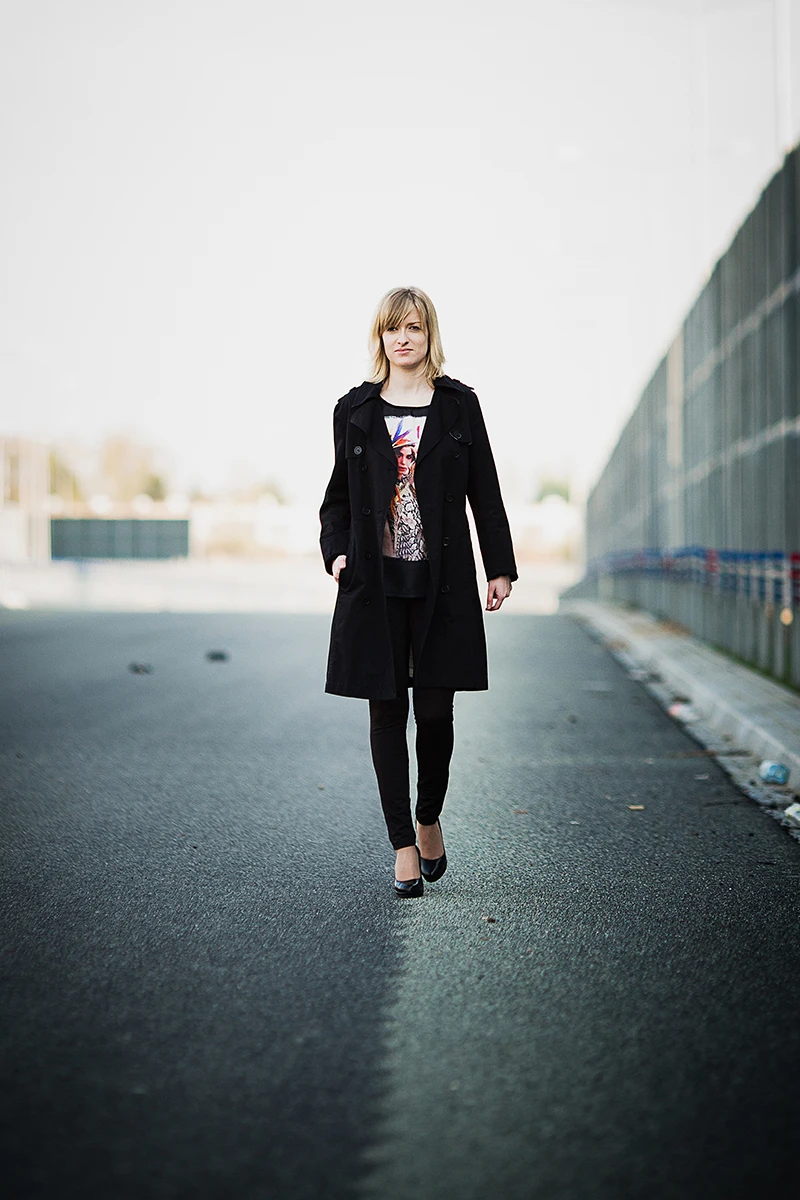 Szukając idealnego tła dla wyrazistego, czarnego looku, postanowiliśmy złamać schemat. Ta sesja lookbookowa (Łódź sesja w plenerze), zrealizowana w Łodzi, przenosi minimalistyczny strój w obszar nowoczesnej, betonowej infrastruktury. Czyste linie nowej autostrady stały się idealną scenografią dla kontrastowego zestawu: ramoneski, legginsów, płaszcza i szpilek. Zapraszamy – lookbook Łódź sesja w plenerze.